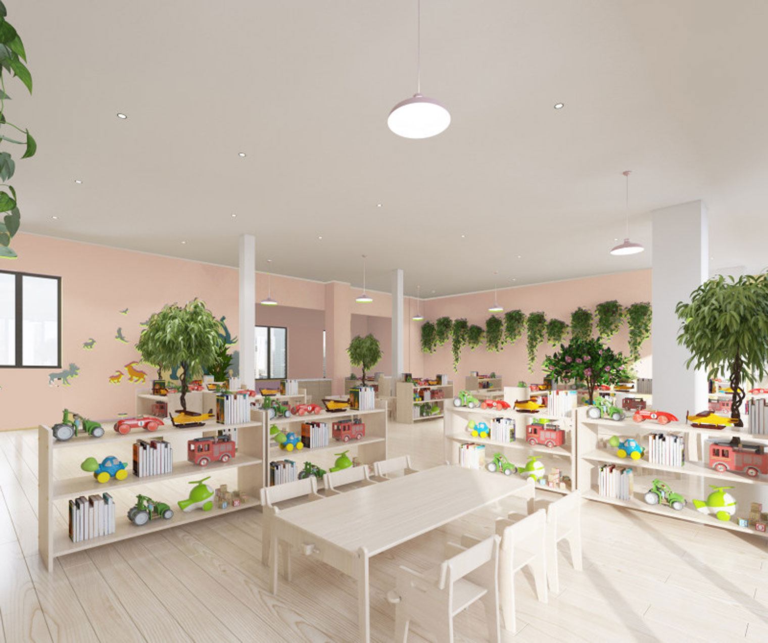 設(shè)計(jì)風(fēng)格:設(shè)計(jì)中整體環(huán)境不僅迎合了教學(xué)環(huán)境的各種需求,還以一系列開放和靈活的空間規(guī)劃營造出舒適的開放自由的成長空間,用無微不至的關(guān)懷、柔軟舒適的細(xì)節(jié)以及充滿趣味和無限幻想的室內(nèi)設(shè)計(jì),結(jié)合高品質(zhì)多功能的空間,詮釋了獨(dú)特的設(shè)計(jì)理念。在空間設(shè)計(jì)及材質(zhì)的處理上我們做了很多減法,整體空間色彩以白色及環(huán)保色漆為主,立體墻面的厚度處出現(xiàn)一些色彩,清爽整潔大氣。