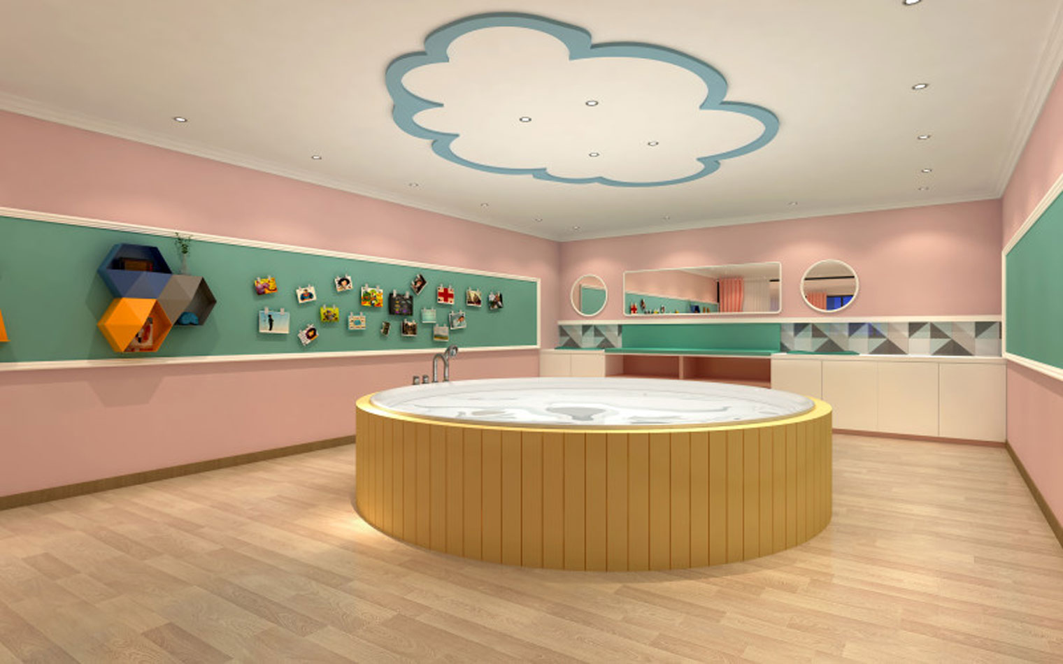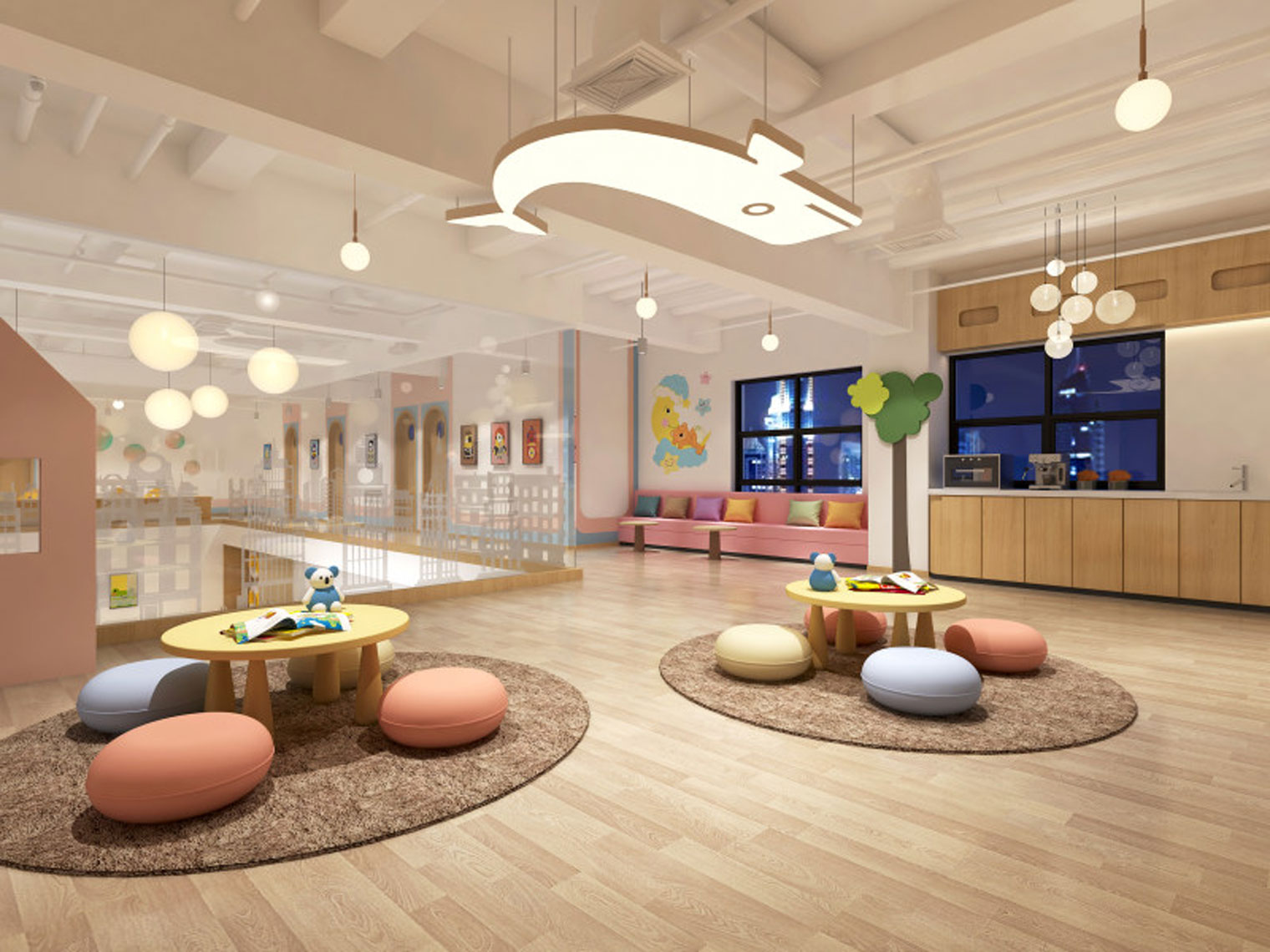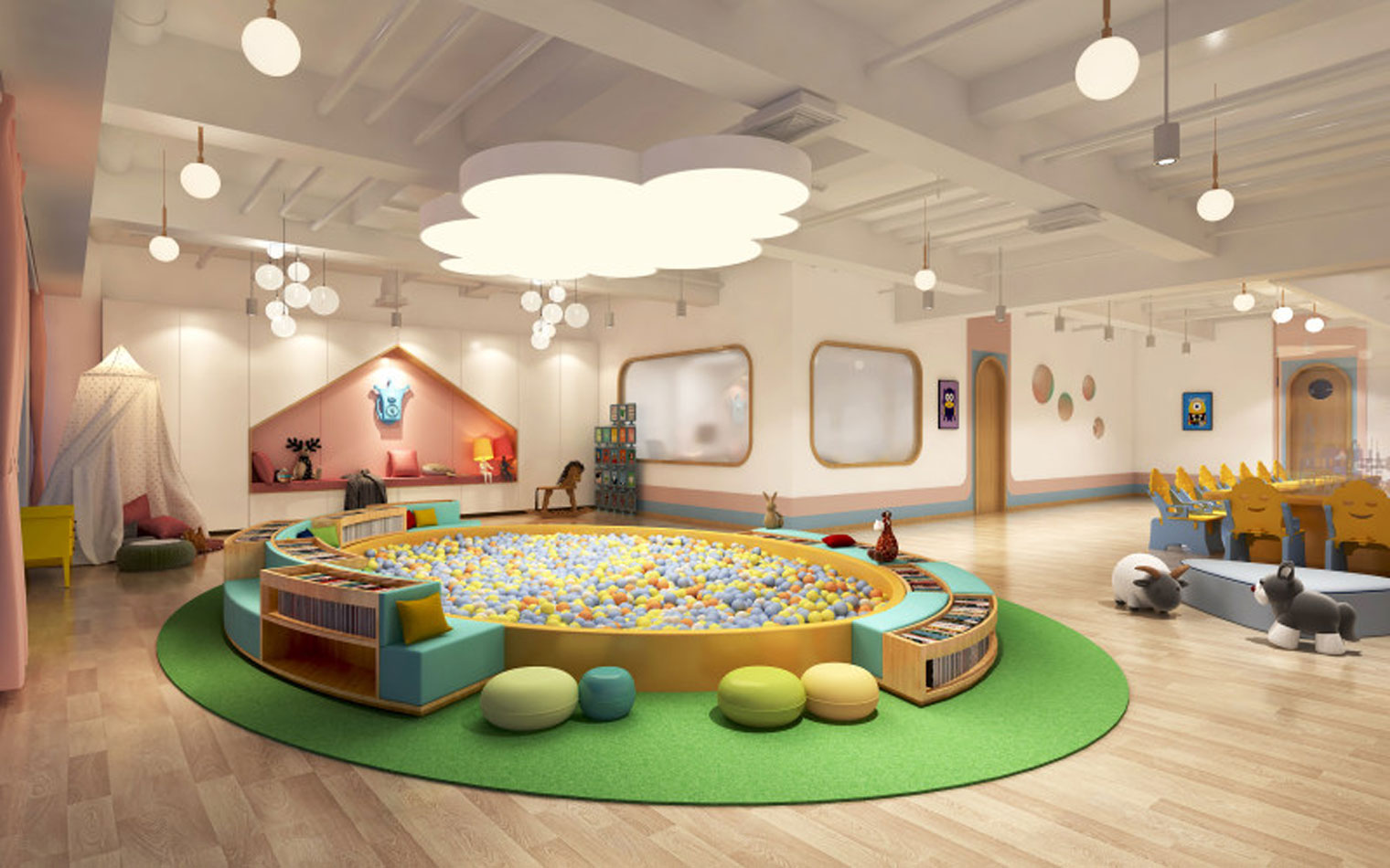 設(shè)計風(fēng)格:設(shè)計師采用客戶固有的設(shè)計元素與VI進行聯(lián)想創(chuàng)作,以簡潔大方的方式展現(xiàn)現(xiàn)代簡約而高檔的早教設(shè)計,通過不同房間的不同色彩進行刺激孩子的視覺感官,從而達到歡悅而活躍的教育氛圍