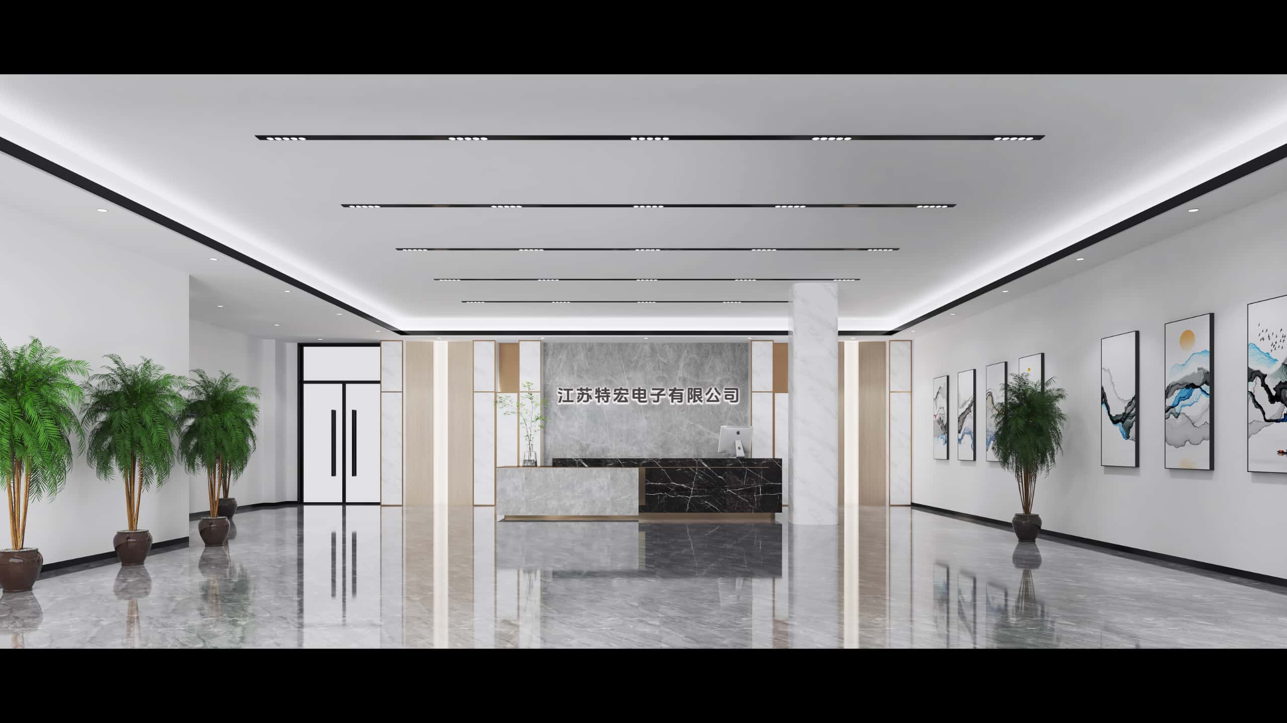 本設計涵蓋江蘇特宏電子有限公司的多個區(qū)域,風格現代且富有科技感與舒適感。