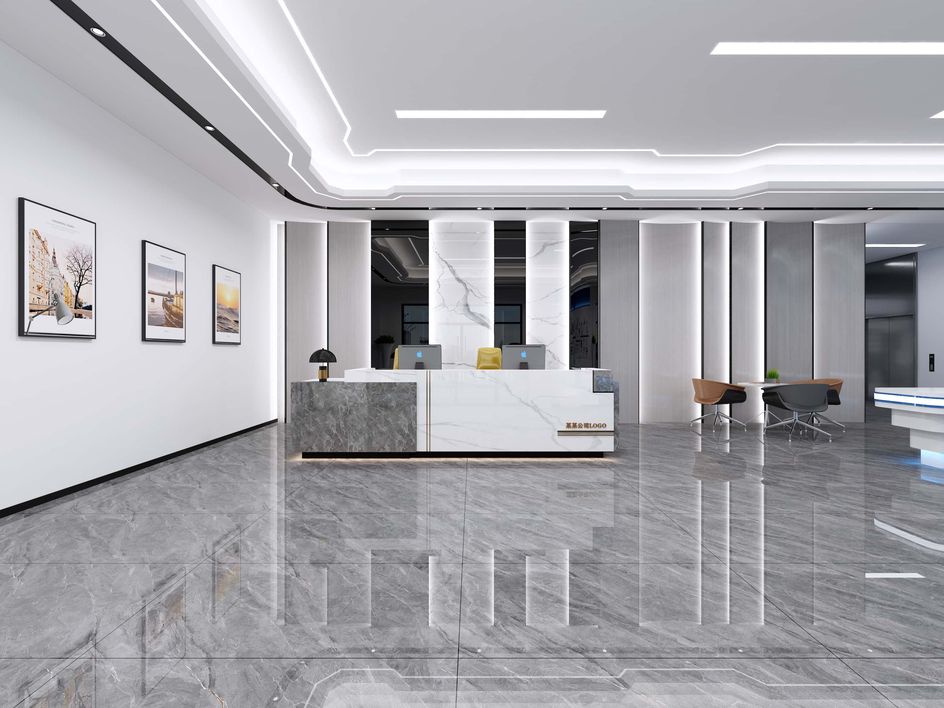 前臺(tái)區(qū)域,以白色為主調(diào),搭配大理石材質(zhì),簡(jiǎn)潔大氣。墻面掛畫(huà)增添藝術(shù)氛圍,燈光設(shè)計(jì)增強(qiáng)空間層次感。