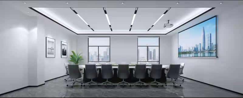 會(huì)議室,空間寬敞明亮,桌椅擺放整齊,大屏幕方便展示,采光良好,窗外景色宜人,營(yíng)造出專(zhuān)業(yè)高效的會(huì)議環(huán)境。