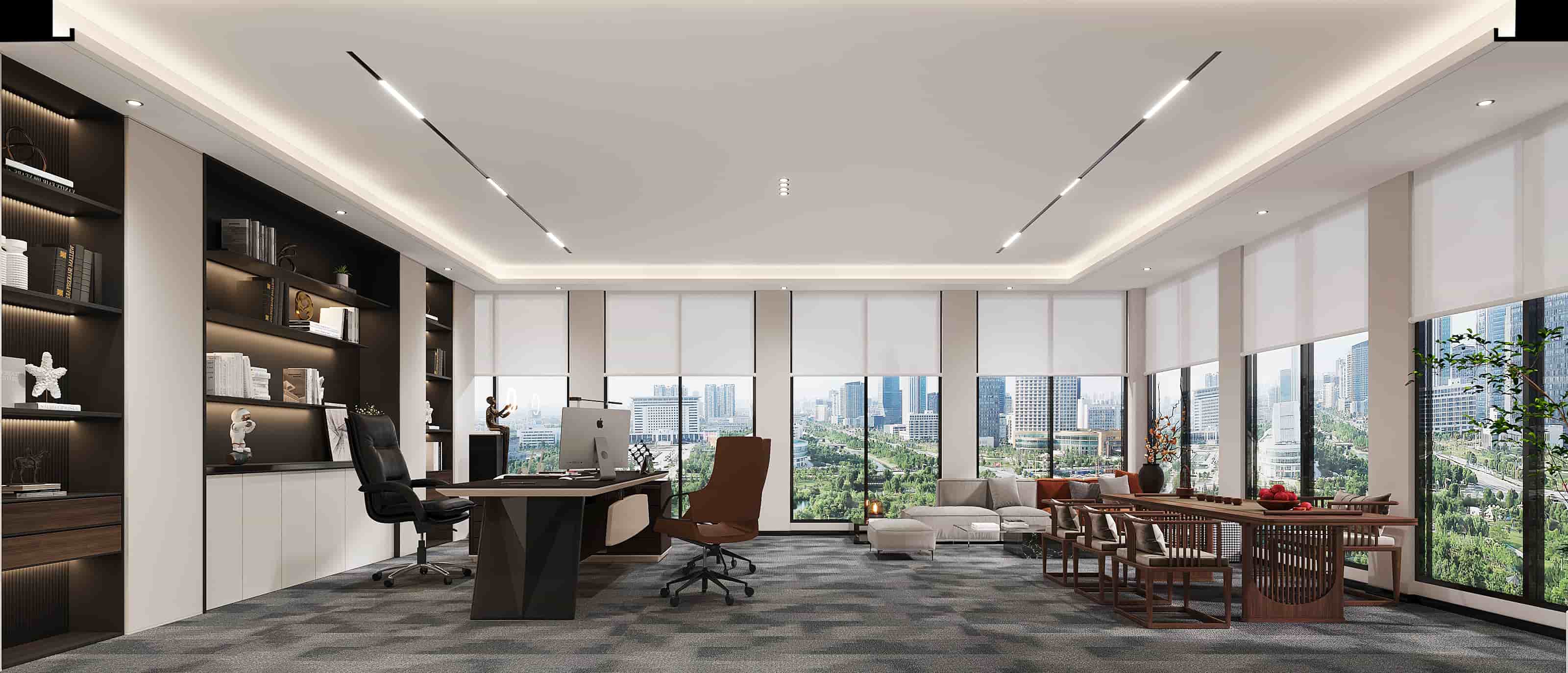 本設(shè)計為一現(xiàn)代辦公空間,整體風(fēng)格簡約而富有活力。