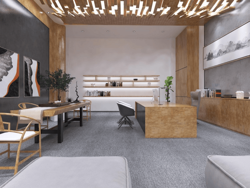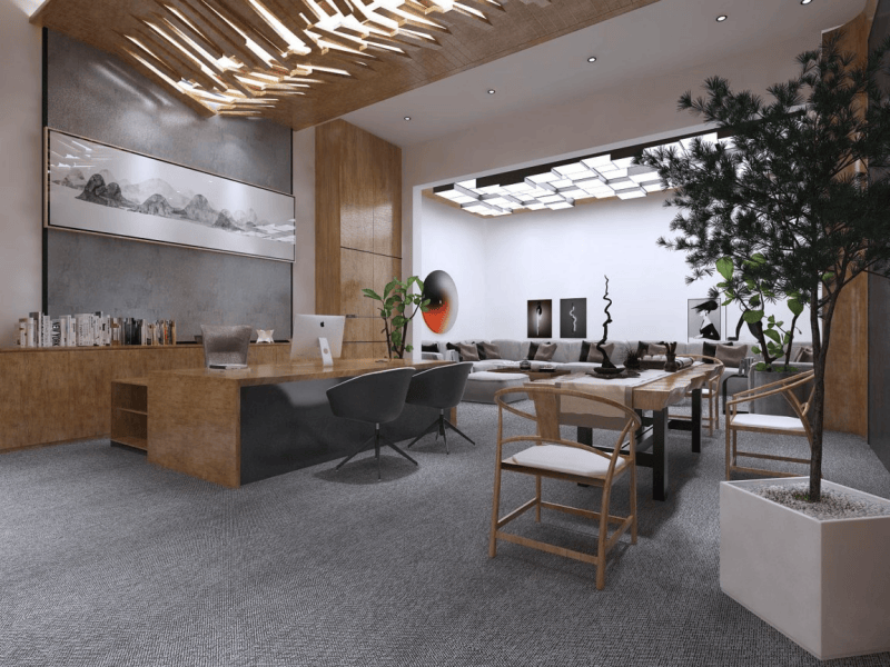 接待區(qū),獨(dú)特的木質(zhì)裝飾墻與綠植點(diǎn)綴,展現(xiàn)自然生機(jī)。辦公區(qū),開(kāi)放式布局搭配靈活的家具,滿足不同辦公需求。會(huì)議室,木質(zhì)桌椅與現(xiàn)代燈具結(jié)合,營(yíng)造專(zhuān)業(yè)氛圍。休閑區(qū),舒適的沙發(fā)搭配藝術(shù)裝飾,為員工提供放松空間。