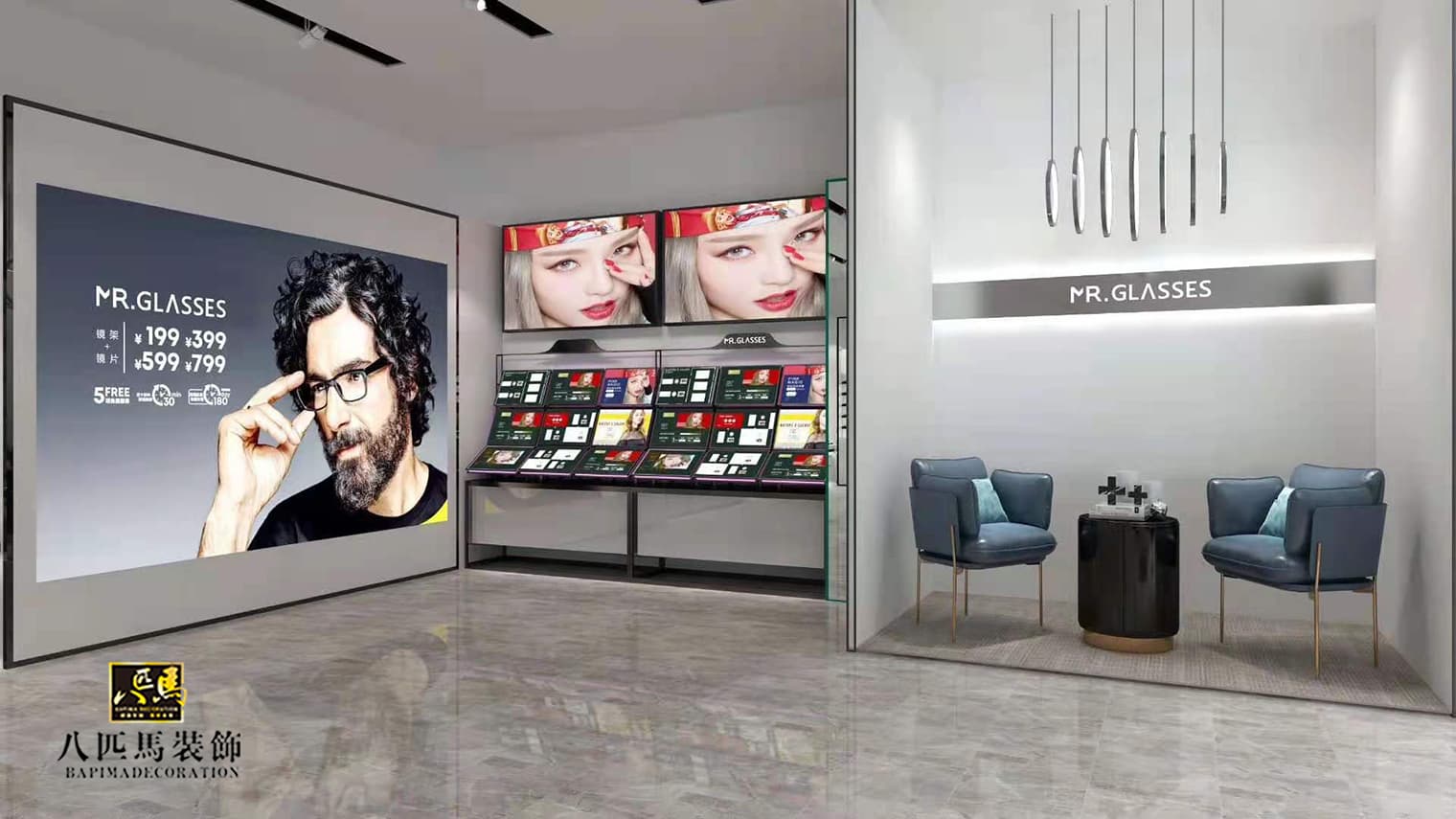設(shè)計風(fēng)格:打造顧客休閑購買潮流時尚的科技風(fēng)眼鏡,給進店客戶以清晰、強烈的感覺。簡潔、明快吸引客戶注意力